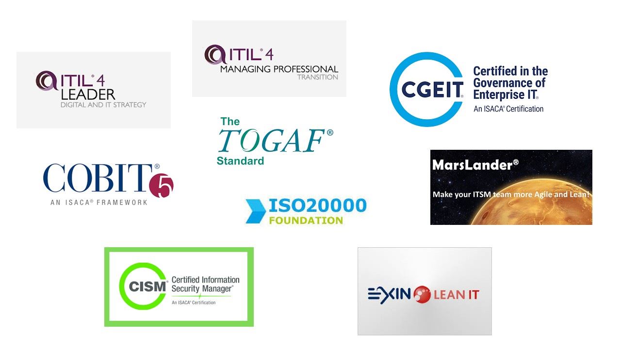 Our consultants have not only the experience of the best practices but are also certified in the following best practice frameworks and standards: